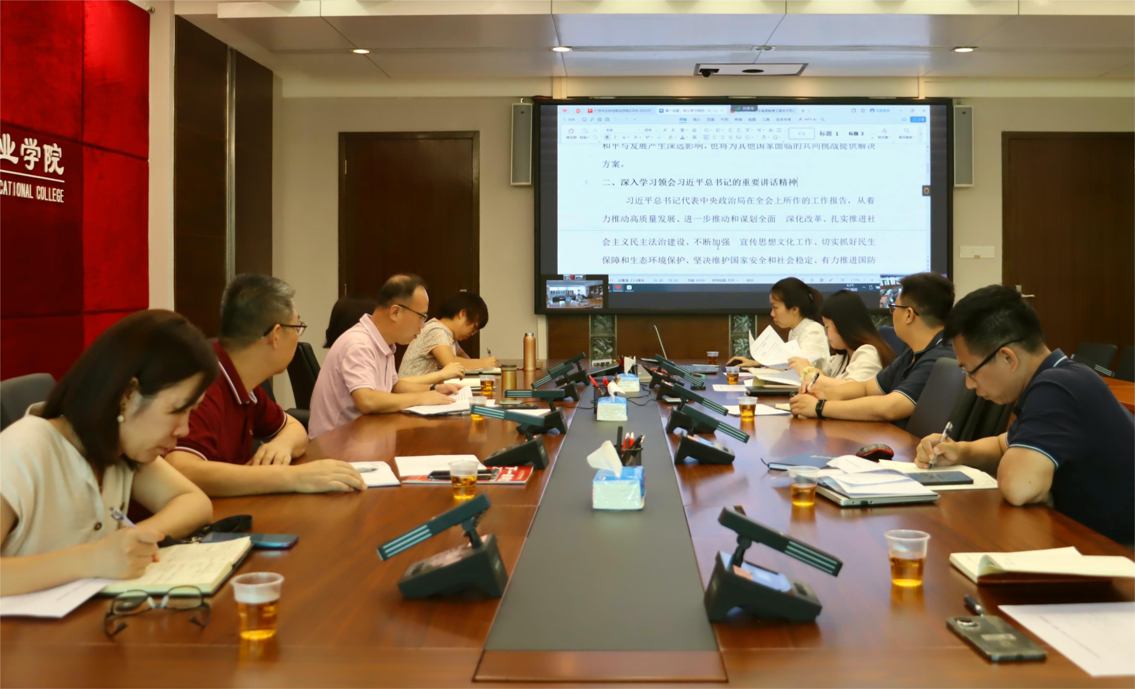 9月2日,學(xué)校召開黨委會(huì),傳達(dá)學(xué)習(xí)黨的二十屆三中全會(huì)精神,結(jié)合學(xué)校實(shí)際,研究部署貫徹落實(shí)意見。學(xué)校黨委書記陳良聲主持會(huì)議,校領(lǐng)導(dǎo)、黨委委員參加學(xué)習(xí),云浮校區(qū)通過視頻連線參加。