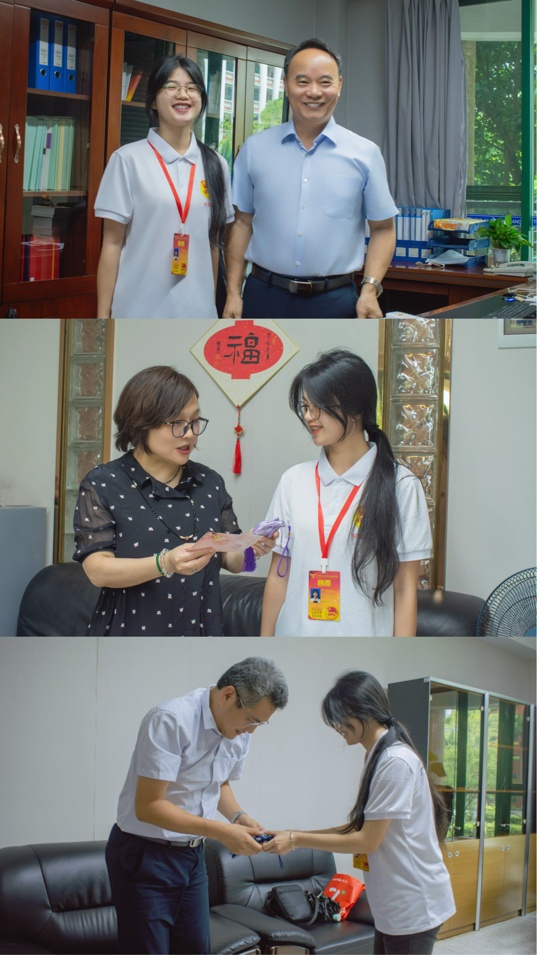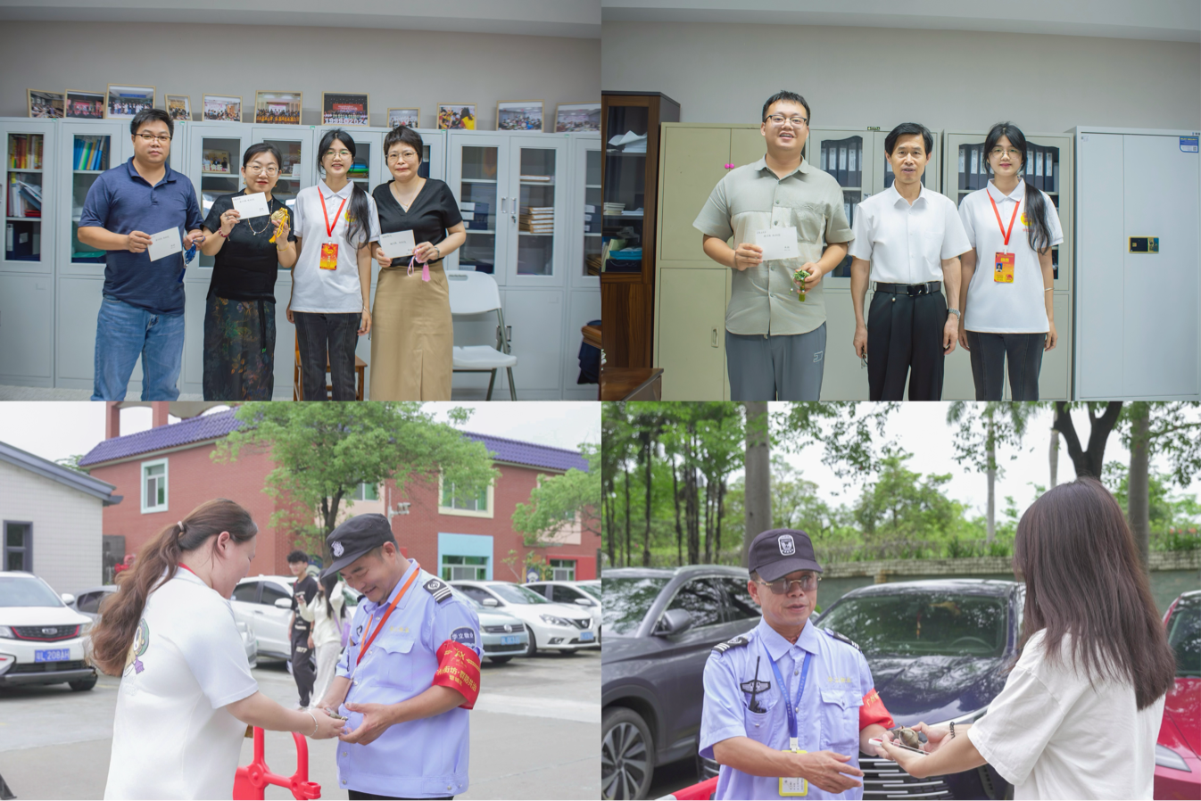 校團委的同學們更懷揣感恩之心,將這份節(jié)日的溫情與安康的祈愿延伸傳遞。他們親手將飽含敬意的粽子與精心制作的香囊,贈予辛勤耕耘的老師們,以及默默奉獻的后勤工作人員。