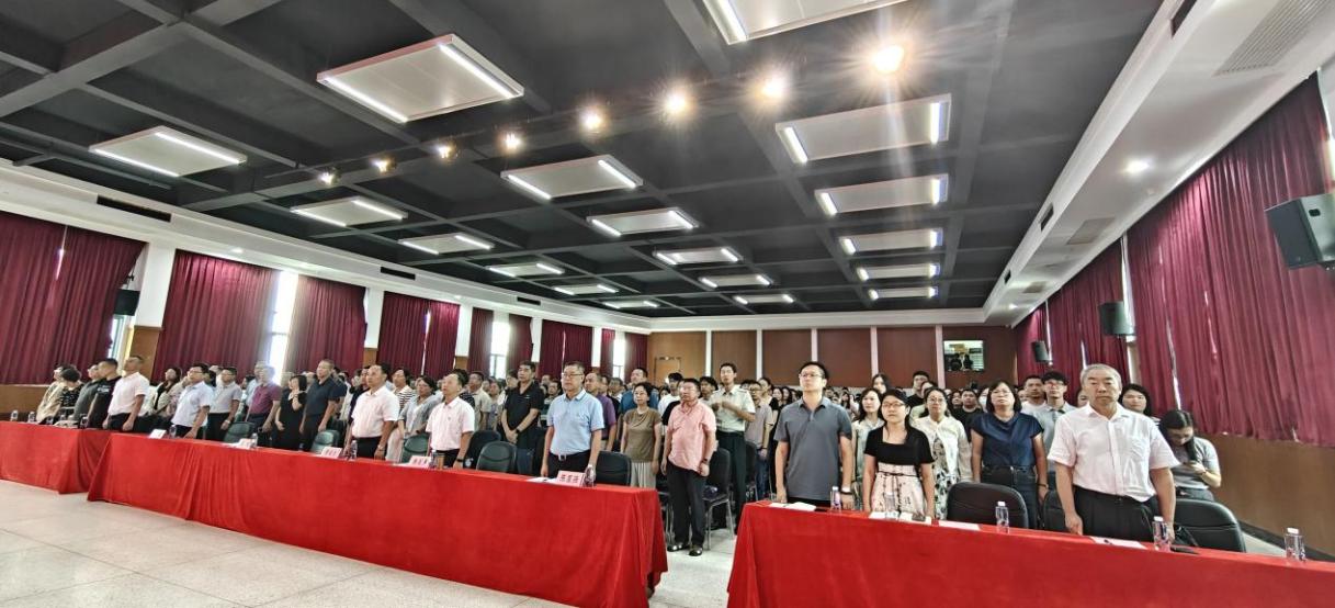 大會在莊嚴(yán)的國歌聲中拉開帷幕,全體教職工肅立齊唱國歌,激發(fā)出團結(jié)奮進的強大力量。