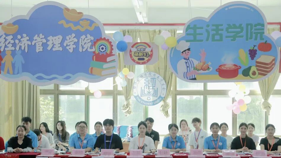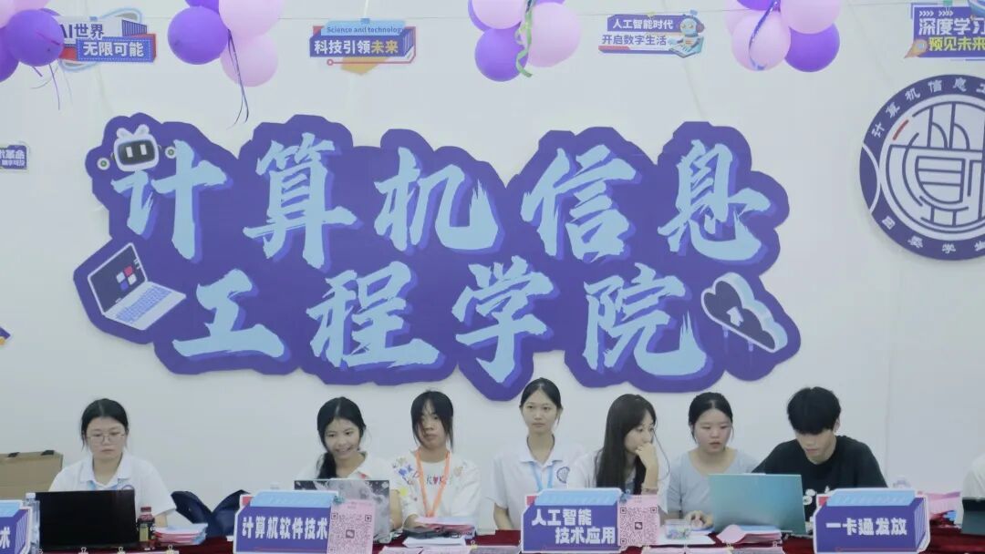 科技樓內(nèi),各二級(jí)學(xué)院報(bào)到點(diǎn)標(biāo)識(shí)醒目、特色鮮明,成為迎新現(xiàn)場(chǎng)的一道亮麗風(fēng)景線。