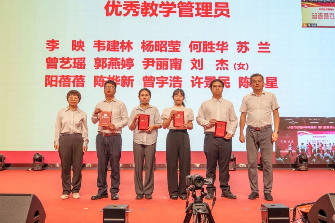 大會隆重表彰了過去一學(xué)年在教育教學(xué)、科研管理、學(xué)生工作、管理服務(wù)等方面涌現(xiàn)出的先進(jìn)集體和個(gè)人。廖俊杰、陳良聲等校領(lǐng)導(dǎo)分別為獲得表彰的集體代表和教師頒獎(jiǎng)。