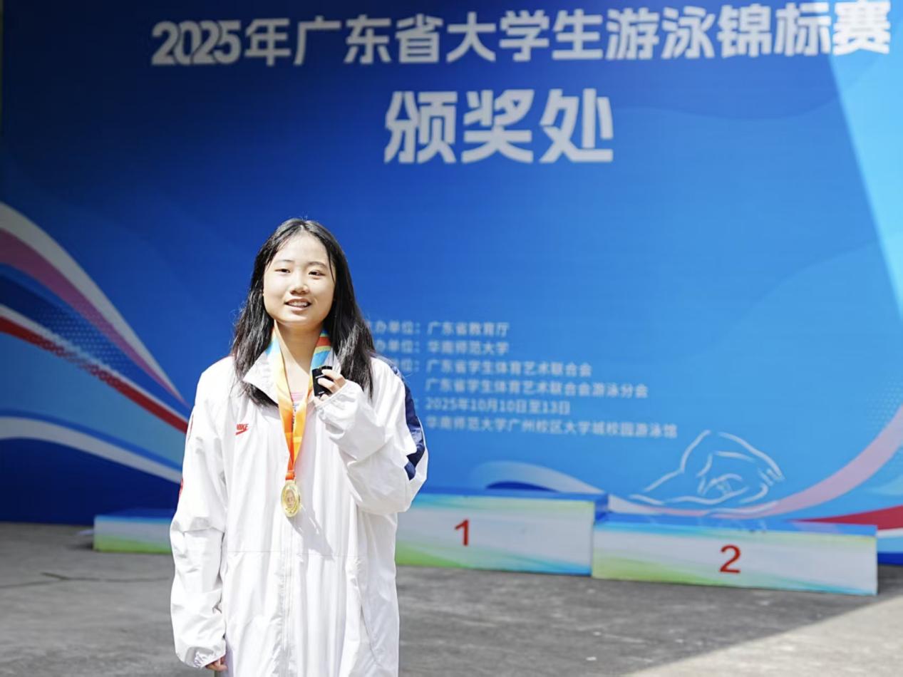 近日,2025年廣東省大學生游泳錦標賽在華南師范大學(大學城校區(qū))游泳館圓滿落幕。經(jīng)過四天的激烈角逐,廣州華立科技職業(yè)學院代表隊以出色的表現(xiàn)和奮勇拼搏的體育精神,在丙組女子100米蛙泳項目中勇奪金牌、女子 50 米蛙泳項目摘得銀牌,另外在乙A組男子100米自由泳比賽中獲得第七名,實現(xiàn)歷史性“開門紅”,書寫了學校體育競技的新篇章。