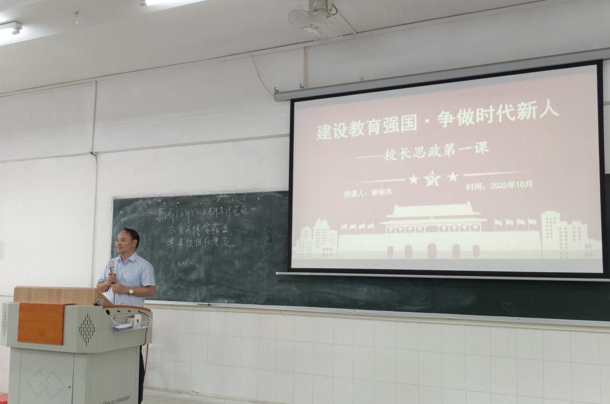 11月7日下午,我校黨委副書記、校長(zhǎng)廖俊杰教授在圖書館501室給電力與智能制造學(xué)院學(xué)生開(kāi)講以“建設(shè)教育強(qiáng)國(guó)·爭(zhēng)做時(shí)代新人”為主題的思政第一課。課程以貫徹黨的二十大、二十屆三中、四中全會(huì)精神為主線,結(jié)合我國(guó)教育發(fā)展歷程與職業(yè)教育實(shí)踐,引導(dǎo)學(xué)生厚植家國(guó)情懷,立志成為新時(shí)代的棟梁之才。