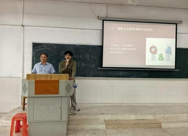 廖校長(zhǎng)強(qiáng)調(diào),職業(yè)教育是與普通教育同等重要的教育類型,是國(guó)民教育體系和人力資源開(kāi)發(fā)的重要組成部分。高職畢業(yè)生占新增就業(yè)人口70%,制造業(yè)一線技術(shù)骨干80%來(lái)自高職,職業(yè)教育已成為教育強(qiáng)國(guó)的“半壁江山”,職業(yè)教育大有可為。在互動(dòng)環(huán)節(jié),他提出“作為高職學(xué)生,你認(rèn)為自己在教育強(qiáng)國(guó)中能扮演什么角色”等問(wèn)題,引發(fā)學(xué)生深思。他引用習(xí)近平總書記的青年寄語(yǔ):“青年一代有理想、有本領(lǐng)、有擔(dān)當(dāng),國(guó)家就有前途,民族就有希望”,鼓勵(lì)學(xué)生立大志、明大德、成大才,將個(gè)人成長(zhǎng)融入國(guó)家發(fā)展。