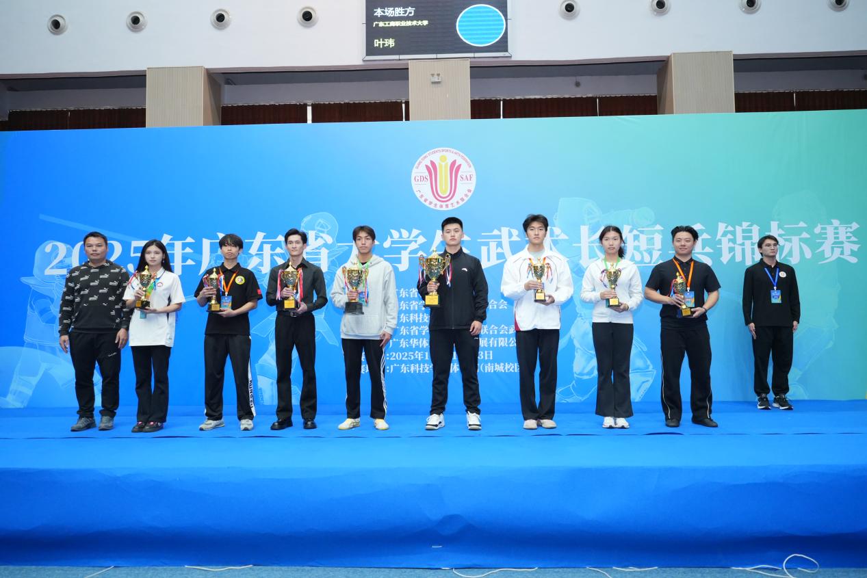 2025年11月22-23日,由廣東省教育廳、廣東省大學(xué)生體育藝術(shù)聯(lián)合會(huì)主辦的廣東省大學(xué)生武術(shù)長短兵錦標(biāo)賽在廣東科技學(xué)院圓滿落幕。廣州華立科技職業(yè)學(xué)院武術(shù)長短兵隊(duì) 首次亮相省級(jí)賽場(chǎng),10名參賽選手奮勇拼搏,最終斬獲2枚金牌、5枚銅牌,并取得團(tuán)體第七的好成績,實(shí)現(xiàn)“首次參賽即奪金”的歷史性突破,用實(shí)力書寫華立體育新篇章!