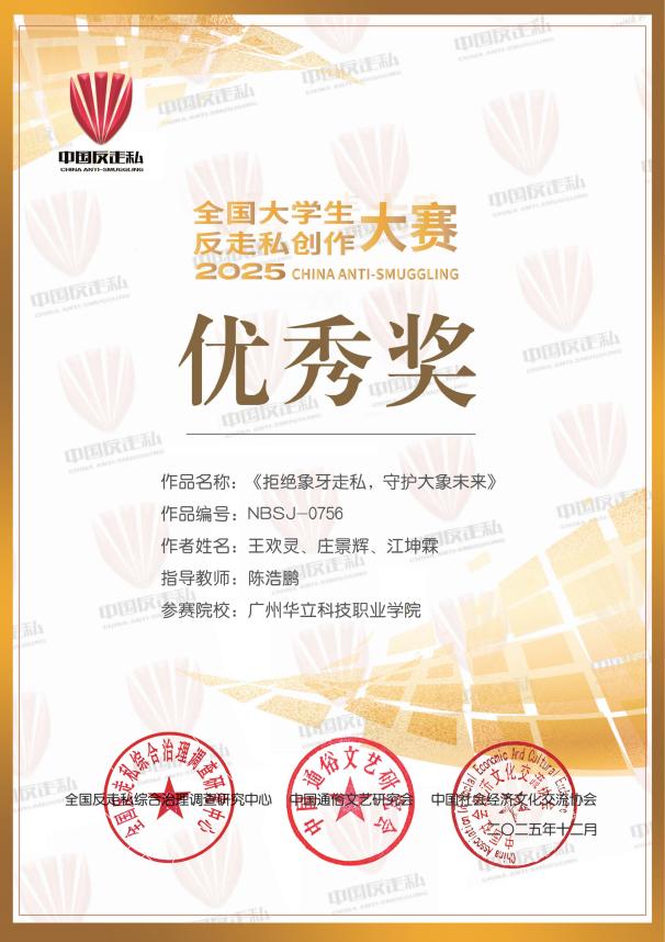 其中獲獎(jiǎng)作品《反走私、護(hù)生態(tài)》由莊景輝、江坤霖兩位同學(xué)共同創(chuàng)作。作品通過富有沖擊力的視覺語言,深刻揭示走私行為對(duì)生態(tài)環(huán)境造成的危害,傳遞出守護(hù)綠水青山、共建生態(tài)文明的價(jià)值理念。作品《拒絕象牙走私,守護(hù)大象未來》由王歡靈、莊景輝、江坤霖三位同學(xué)聯(lián)合設(shè)計(jì),聚焦象牙非法貿(mào)易問題,以鮮明、生動(dòng)的視覺表達(dá)喚起公眾對(duì)野生動(dòng)物保護(hù)的關(guān)注與行動(dòng)。