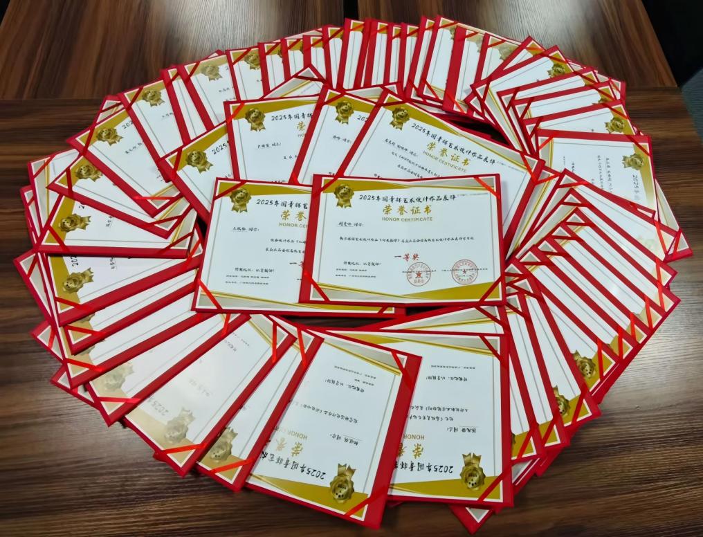 比賽吸引了來自中央美術(shù)學院、中國美術(shù)學院、江南大學設(shè)計學院等全國百余所高校精英師生同臺競技,賽事評選標準嚴苛,兼具專業(yè)性與行業(yè)引領(lǐng)性。我院師生憑借扎實的專業(yè)功底、創(chuàng)新的設(shè)計思維和鮮明的創(chuàng)作特色脫穎而出,在眾多優(yōu)秀作品中斬獲國賽佳績。其中,教師組一等獎6項、二等獎7項;學生組一等獎9項、二等獎11項、三等獎11項。同時,尹麗甯老師獲評“優(yōu)秀組織教師”獎,馮瀚、伍芷瑩、謝怡三位老師獲評”優(yōu)秀指導(dǎo)教師”獎,充分彰顯了我院藝術(shù)設(shè)計教育的硬核實力與人才培養(yǎng)的顯著成效。