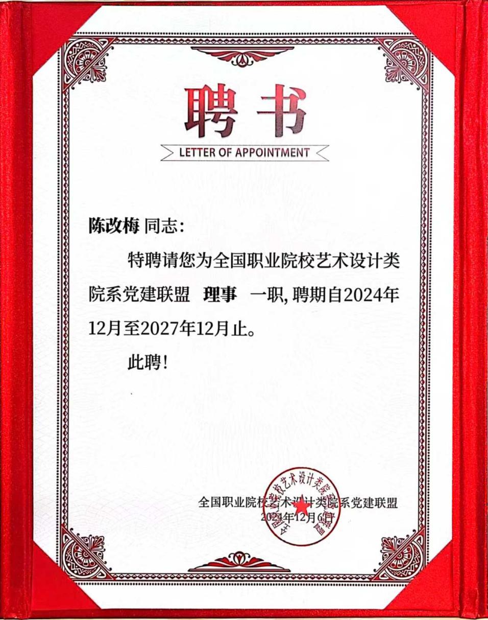 聯(lián)盟宣布成立后,審議通過(guò)了章程,并確定了廣輕大藝術(shù)設(shè)計(jì)學(xué)院為聯(lián)盟理事長(zhǎng)單位,廣州華立科技職業(yè)學(xué)院藝術(shù)與傳媒學(xué)院擔(dān)任理事單位,藝術(shù)與傳媒學(xué)院黨總支書(shū)記陳改梅受聘擔(dān)任理事一職。