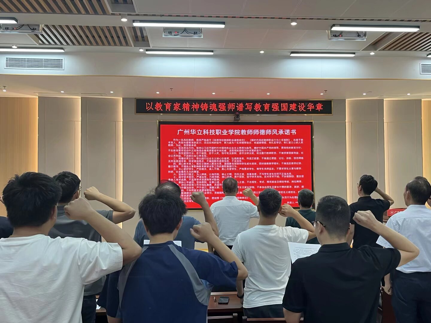 首先,全體教師共同以莊重的聲音立誓承諾《廣州華立科技職業(yè)學(xué)院教師師德師風(fēng)承諾書(shū)》:嚴(yán)格遵守《高等學(xué)校教師職業(yè)道德規(guī)范》、《新時(shí)代高校教師職業(yè)行為十項(xiàng)準(zhǔn)則》,努力成為有理想信念、有道德情操、有扎實(shí)學(xué)識(shí)、有仁愛(ài)之心的人民教師。隨后現(xiàn)場(chǎng)進(jìn)行了簽訂承諾書(shū)儀式,全體教師簽署《廣州華立科技職業(yè)學(xué)院教師師德師風(fēng)承諾書(shū)》,以書(shū)面形式固化承諾內(nèi)容,進(jìn)一步強(qiáng)化了對(duì)師德師風(fēng)規(guī)范的認(rèn)同與踐行,彰顯了全體教師恪守師德、潛心育人的堅(jiān)定決心。