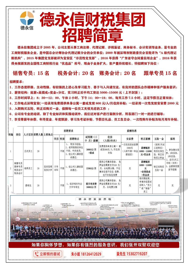 德永信財稅集團招聘信息(銷售專員、跟單專員、稅務(wù)會計、財務(wù)會計)