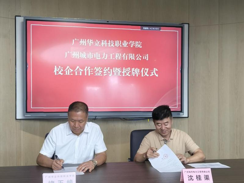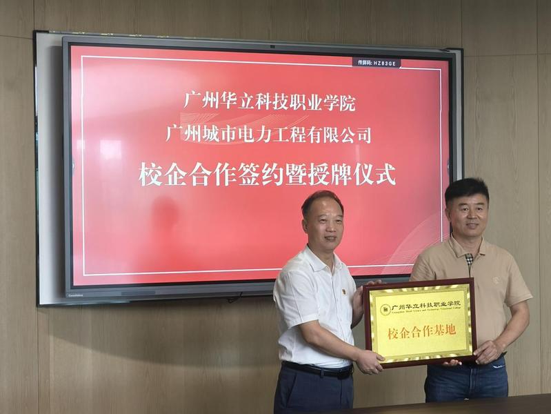 交流結(jié)束后,電力與智能制造學(xué)院院長(zhǎng)褚玉峰與廣州城市電力工程有限公司總裁沈桂渠續(xù)簽了校企合作協(xié)議書(shū),陳良聲書(shū)記為企業(yè)授了“校企合作基地”牌子。