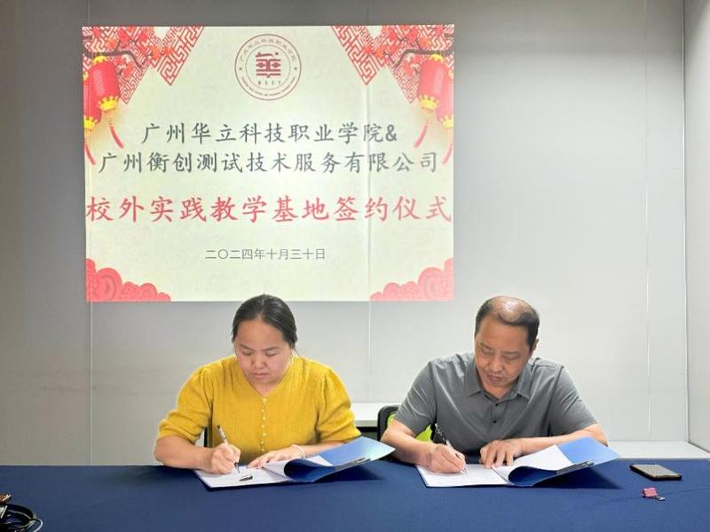 在廣州衡創(chuàng)測試技術服務有限公司,張劍鋒一行實地參觀企業(yè)環(huán)境,了解企業(yè)基本情況。隨后,校企雙方就專業(yè)對口性、崗位要求、學生實踐項目合作等問題進行了深入探討。馬洪德表示,希望通過更多合作項目,推動提升學生理論學習與實踐運用相結合的專業(yè)素質和動手能力。最后,雙方進行了校外實踐教學基地簽訂儀式。
