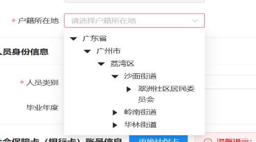 7.戶籍所在地:下拉框選擇,務(wù)必按照戶口本首頁信息填寫,格式為xx省xx市xx區(qū)/縣