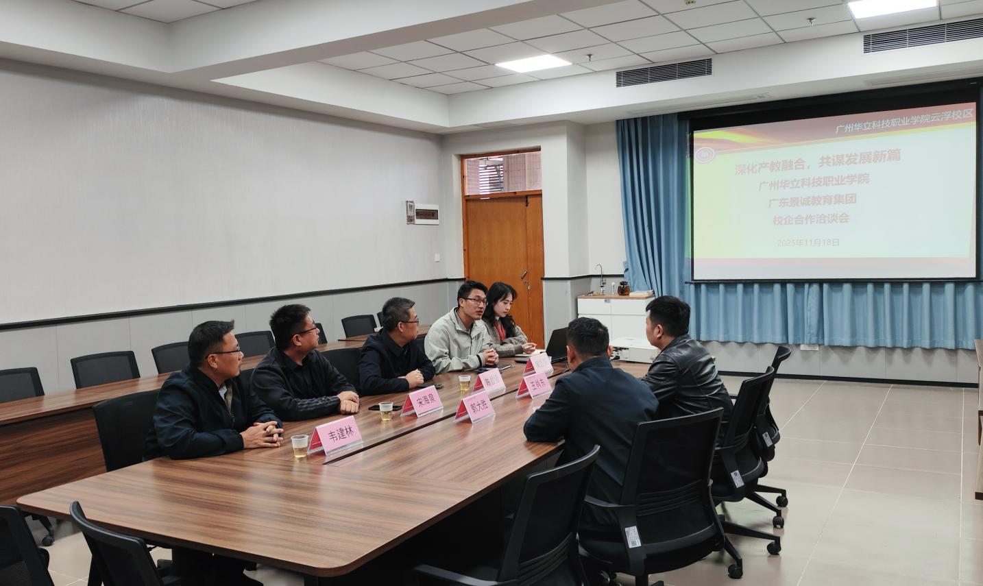 2025年11月18日,廣東省景誠智慧科技有限公司總經(jīng)理一行到訪我校云浮校區(qū)進(jìn)行校企合作洽談,我校副校長陳顯強(qiáng)、計算機(jī)學(xué)院黨總支書記宋海泉等代表出席洽談會,雙方圍繞“深化多元融合,共謀發(fā)展新篇”的主題,就推進(jìn)產(chǎn)教深度融合、創(chuàng)新人才培養(yǎng)模式等方面展開了深入交流。