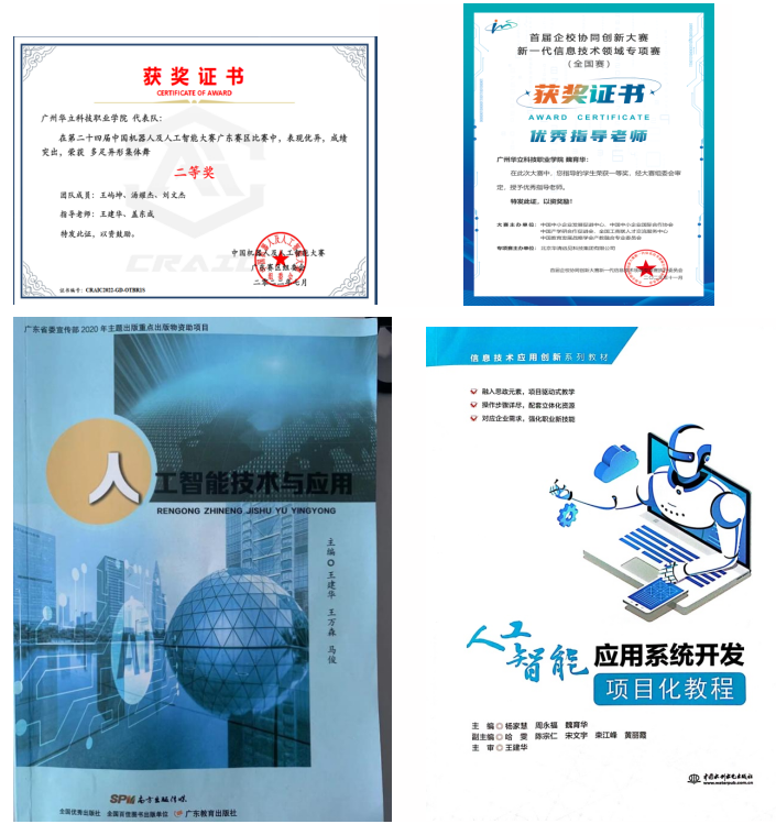 學(xué)生團(tuán)隊(duì)積極參與各類專業(yè)技能大賽與創(chuàng)新賽,充分展示我院學(xué)生實(shí)踐能力與創(chuàng)新精神。其中,在中國機(jī)器人及人工智能大賽獲從24到27屆多次取得全國一等獎(jiǎng)。教師團(tuán)隊(duì)積極參與人工智能相關(guān)書籍編寫與科研項(xiàng)目,其中《人工智能技術(shù)與應(yīng)用》獲廣東省十四五規(guī)劃教材、省宣傳部重點(diǎn)出版物稱號(hào),依托人工智能賦能獲廣東省教學(xué)成果獎(jiǎng)二等獎(jiǎng),彰顯專業(yè)教科研實(shí)力。