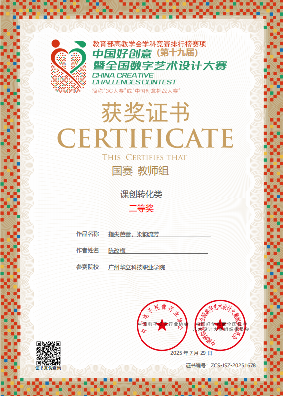 國(guó)賽(教師組)課創(chuàng)轉(zhuǎn)化類二等獎(jiǎng)證書
