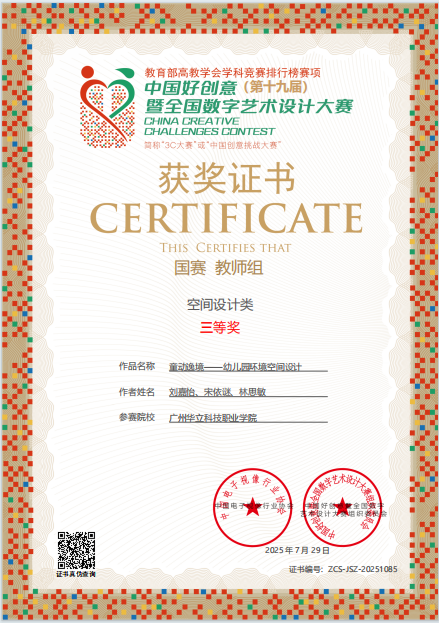 國(guó)賽(教師組)空間設(shè)計(jì)類三等獎(jiǎng)證書