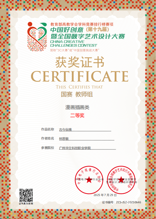 國(guó)賽(教師組)漫畫插畫類二等獎(jiǎng)證書