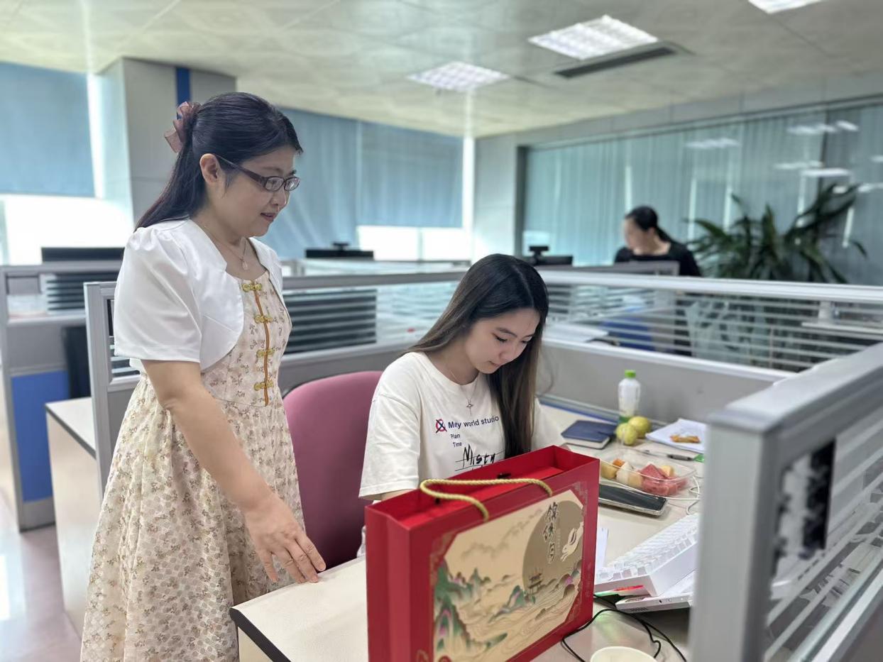 慰問期間,陳改梅書記與李雅琪同學(xué)進(jìn)行了親切交談,詳細(xì)了解了她在實(shí)習(xí)崗位上的工作內(nèi)容、生活狀況以及實(shí)習(xí)收獲。陳書記親手將代表團(tuán)圓和祝福的月餅禮盒送到李雅琪手中,對(duì)她能夠在中國(guó)電信這樣的大型國(guó)企穩(wěn)定實(shí)習(xí)、鍛煉自我表示了充分肯定。