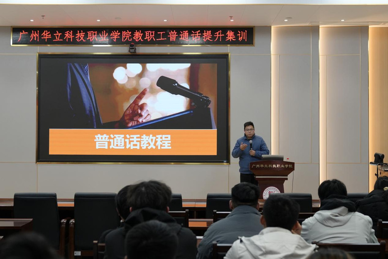 為提升教職工普通話應(yīng)用水平,強化教育教學(xué)語言規(guī)范,近日,廣州華立科技職業(yè)學(xué)院開展教職工普通話提升集訓(xùn)。學(xué)校人事處處長鐘文浩、藝術(shù)與傳媒學(xué)院院長朱君到場參會,全校各部門教職工積極參訓(xùn)。