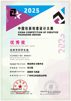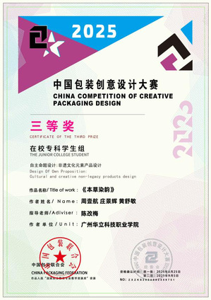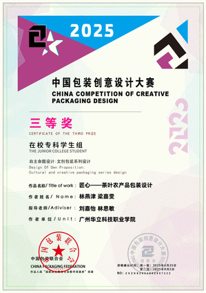 八、2025年8月,中國包裝創(chuàng)意設計大賽是由中國包裝聯(lián)合會主辦的國家級權威賽事,涵蓋工業(yè)生產(chǎn)、行業(yè)標準、包裝教育、智能制造與先進設計等多個領域,面向全球設計愛好者及院校師生,已成為我國包裝與設計教育界具有廣泛影響力的專業(yè)競賽平臺。大賽優(yōu)秀作品亦納入教育部國家職業(yè)教育專業(yè)教學資源庫建設。2025中國包裝創(chuàng)意設計大賽,藝術與傳媒學院學生作品共斬獲國家級“三等獎”5項、“優(yōu)秀獎”6項,充分展現(xiàn)了藝術與傳媒學院在設計教育與創(chuàng)新實踐方面的扎實成效。