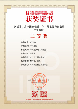三、2025年5月,“米蘭設計周·中國高校設計學科師生優(yōu)秀作品展”由中國教育國際交流協(xié)會、中國高等教育學會聯(lián)合主辦,是教育部《全國普通高校學科競賽排行榜》重點賽事之一。賽事吸引了全國近千所高校參與,賽事旨在搭建國際化交流平臺,推動設計學科教學與實踐的深度融合,助力中國設計走向世界。在第九屆“米蘭設計周·中國高校設計學科師生優(yōu)秀作品展”藝術與傳媒學院師生榮獲“二等獎”1項、“三等獎”7項,充分展現(xiàn)了藝傳學院在設計教育領域“以賽促教、以文化人”的育人成果與師生團隊的卓越風采。