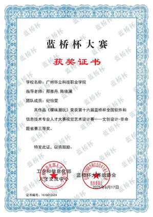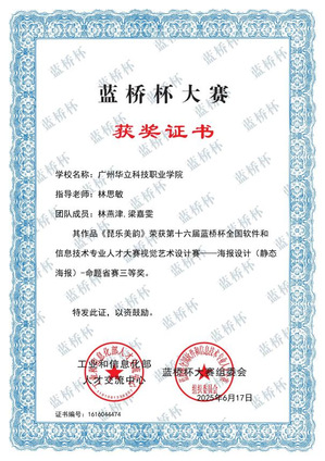 四、2025年6月,“藍橋杯全國軟件和信息技術專業(yè)人才大賽”由工業(yè)和信息化部人才交流中心主辦,連續(xù)多年入選中國高等教育學會“全國普通高校學科競賽排行榜”。本屆大賽省賽在全國31個省市自治區(qū)舉辦,來自北京大學、清華大學、復旦大學、上海交通大學等1900多所高校的23萬名選手同臺競技。在第十六屆“藍橋杯?視覺藝術設計大賽”藝術與傳媒學院學子斬獲“一等獎”2項、“二等獎”1項、“三等獎”5項。