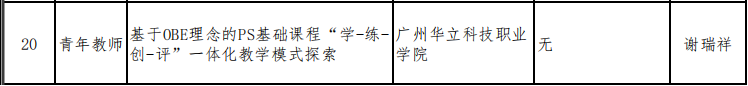 《基于OBE理念的PS基礎(chǔ)課程“學(xué)-練-創(chuàng)-評(píng)”一體化教學(xué)模式探索》(負(fù)責(zé)人:謝瑞祥),該課題聚焦基礎(chǔ)技能課程,探索以成果為導(dǎo)向的一體化教學(xué)模式改革。