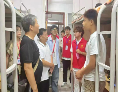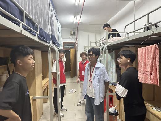 在走訪宿舍過程中,領導們給新生帶來了滿滿的關懷與溫暖,親切詢問同學們對宿舍的滿意度,空調效果如何,生活是否習慣,學校的飯對不對口味,有沒有給家里報平安了。同時提醒新生要注意校園安全、預防網(wǎng)絡詐騙,并指出,學校是同學們溫暖的家,若有困難和需求,第一時間尋求老師的幫助,我們都會盡全力為大家排憂解難。