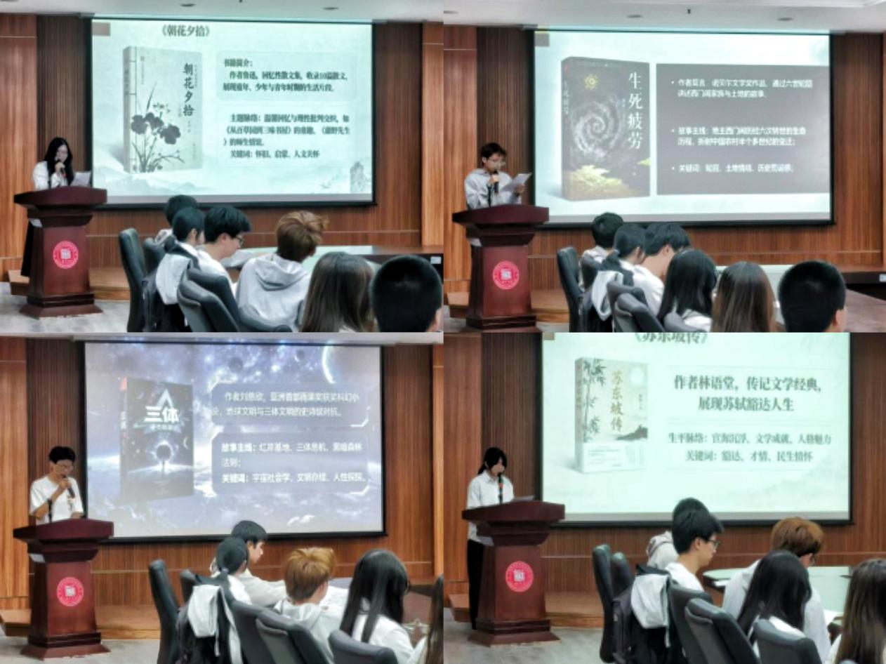 在讀書分享環(huán)節(jié),同學(xué)們將文學(xué)閱讀與專業(yè)視野相融合,展開精彩分享。大家從《百年孤獨》探討城市興衰,在《蘇東坡傳》感悟為民擔當,通過《三體》構(gòu)建系統(tǒng)思維,在《生死疲勞》品味土地情懷,從《朝花夕拾》領(lǐng)會建筑溫度。這些獨特視角展現(xiàn)了城建學(xué)子跨學(xué)科的知識儲備和深厚的專業(yè)素養(yǎng),現(xiàn)場分享氛圍熱烈,思想火花不斷迸發(fā)。