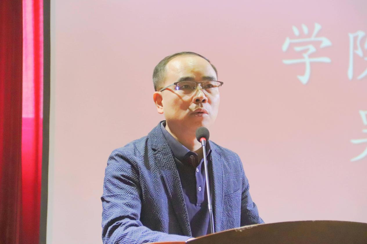 激昂的團(tuán)歌旋律響起,全體人員起立奏唱團(tuán)歌,歌聲嘹亮,展現(xiàn)出青年學(xué)子的蓬勃朝氣與昂揚(yáng)風(fēng)貌,為大會拉開了正式序幕。隨后,學(xué)院黨總支書記吳毅強(qiáng)副教授發(fā)表致辭,他對團(tuán)委學(xué)生會的工作給予充分肯定,同時寄語全體成員要牢記責(zé)任使命,以實(shí)干踐行初心,在服務(wù)同學(xué)、建設(shè)學(xué)院的過程中錘煉品格、增長才干。