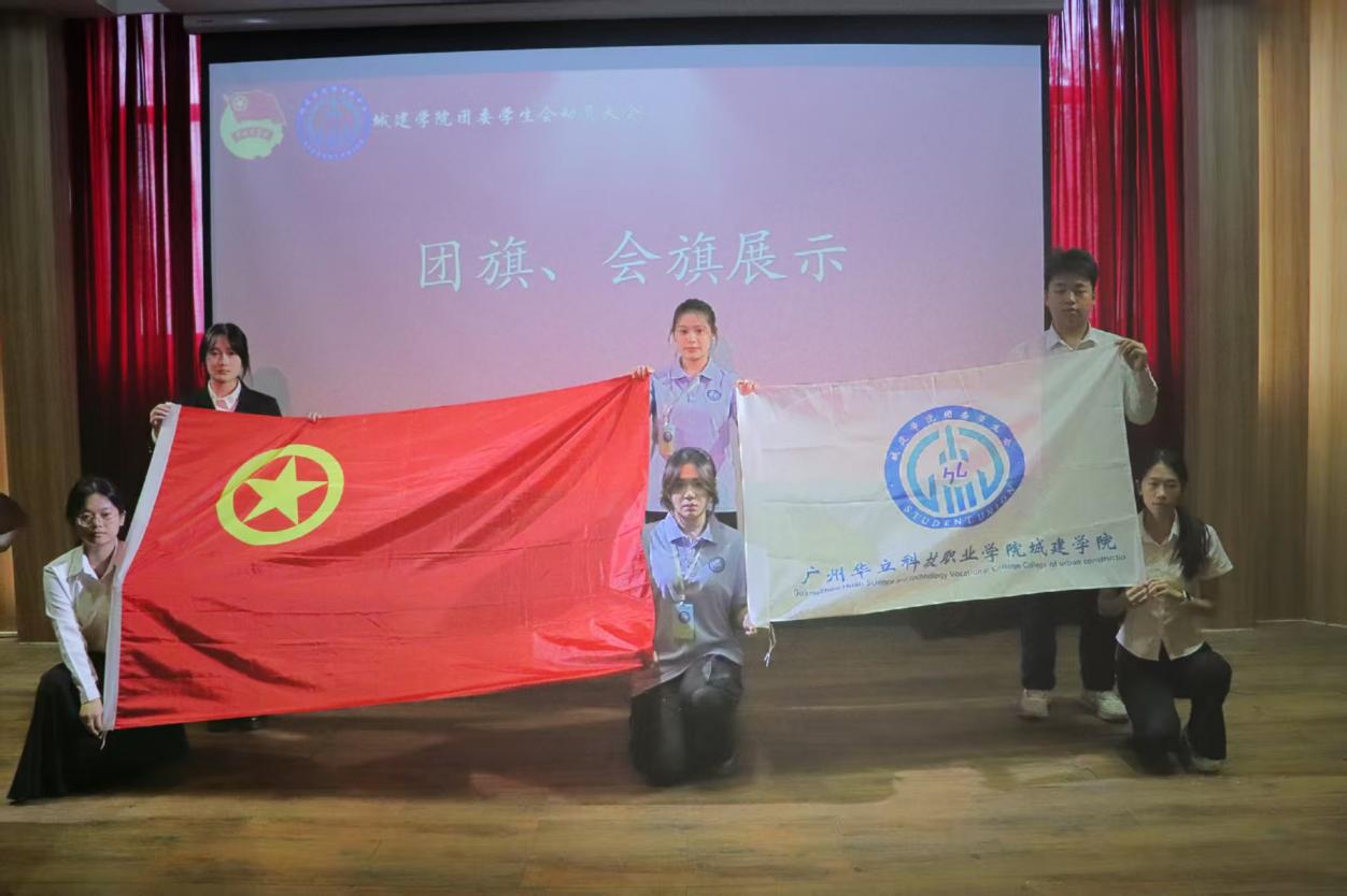 在振奮人心的會旗、團(tuán)旗展示環(huán)節(jié)中,旗幟飄揚(yáng)、信念傳遞,象征著城建學(xué)院團(tuán)委學(xué)生會的精神傳承與使命延續(xù)。