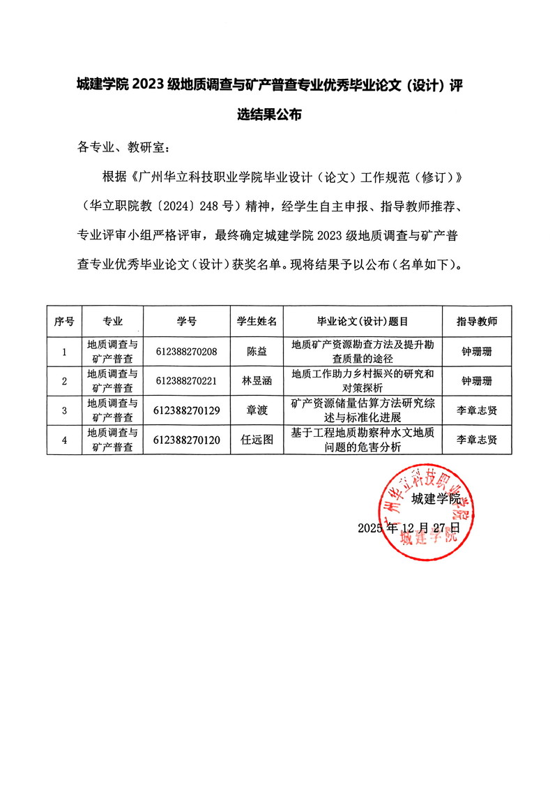 城建學院2023級地質(zhì)調(diào)查與礦產(chǎn)普查專業(yè)優(yōu)秀畢業(yè)論文(設(shè)計)評選公布