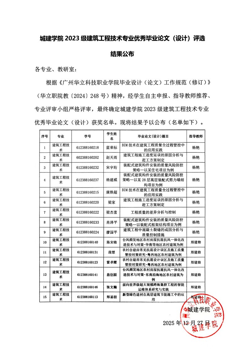城建學(xué)院2023級建筑工程技術(shù)專業(yè)優(yōu)秀畢業(yè)論文(設(shè)計)評選公布