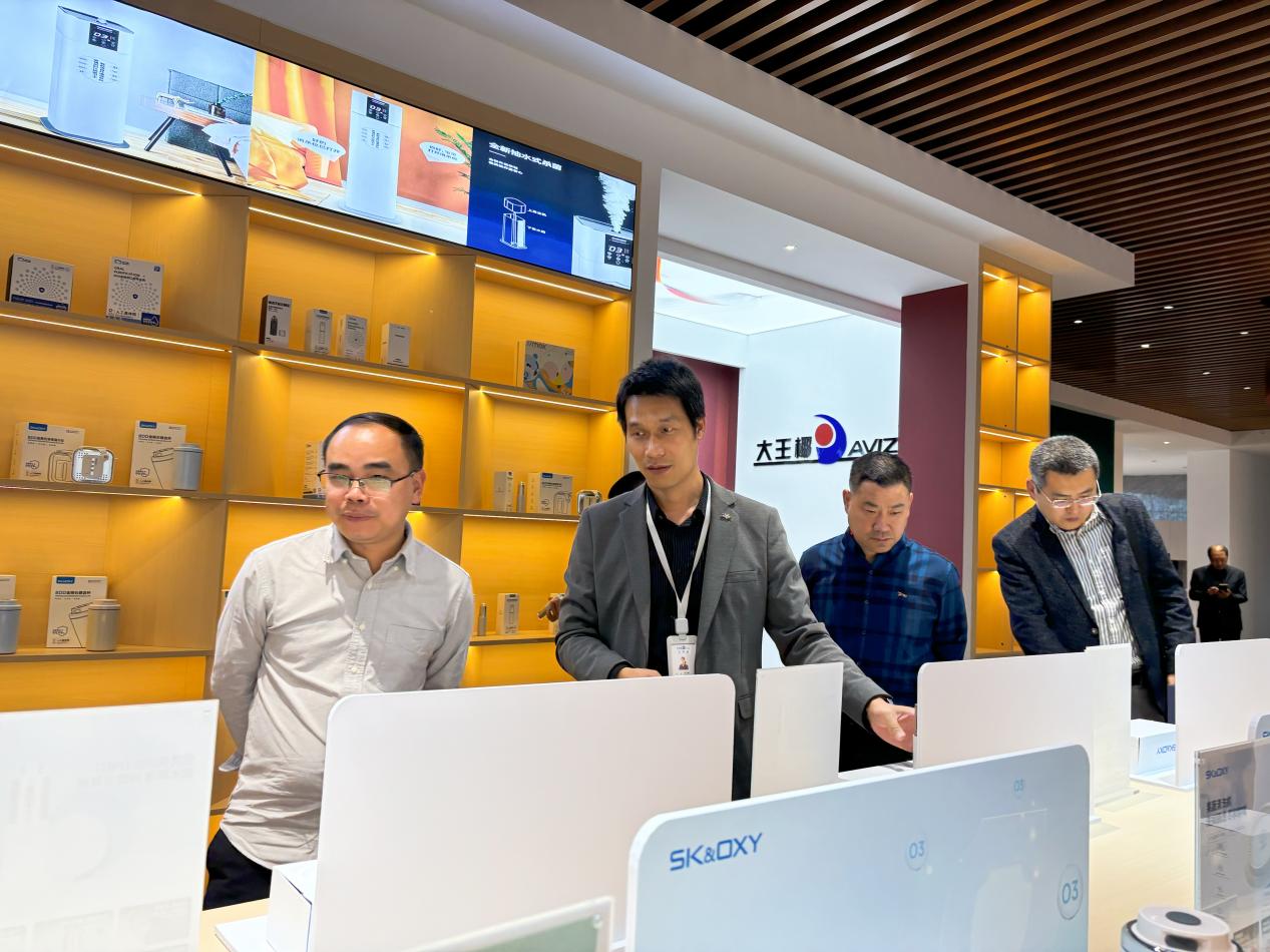 在大王椰有限公司,張劍鋒一行先后參觀了該公司的生產(chǎn)制造車間,產(chǎn)品展區(qū),了解工作環(huán)境、工作內(nèi)容、企業(yè)研發(fā)成果等。隨后,校企雙方進(jìn)行了座談會。