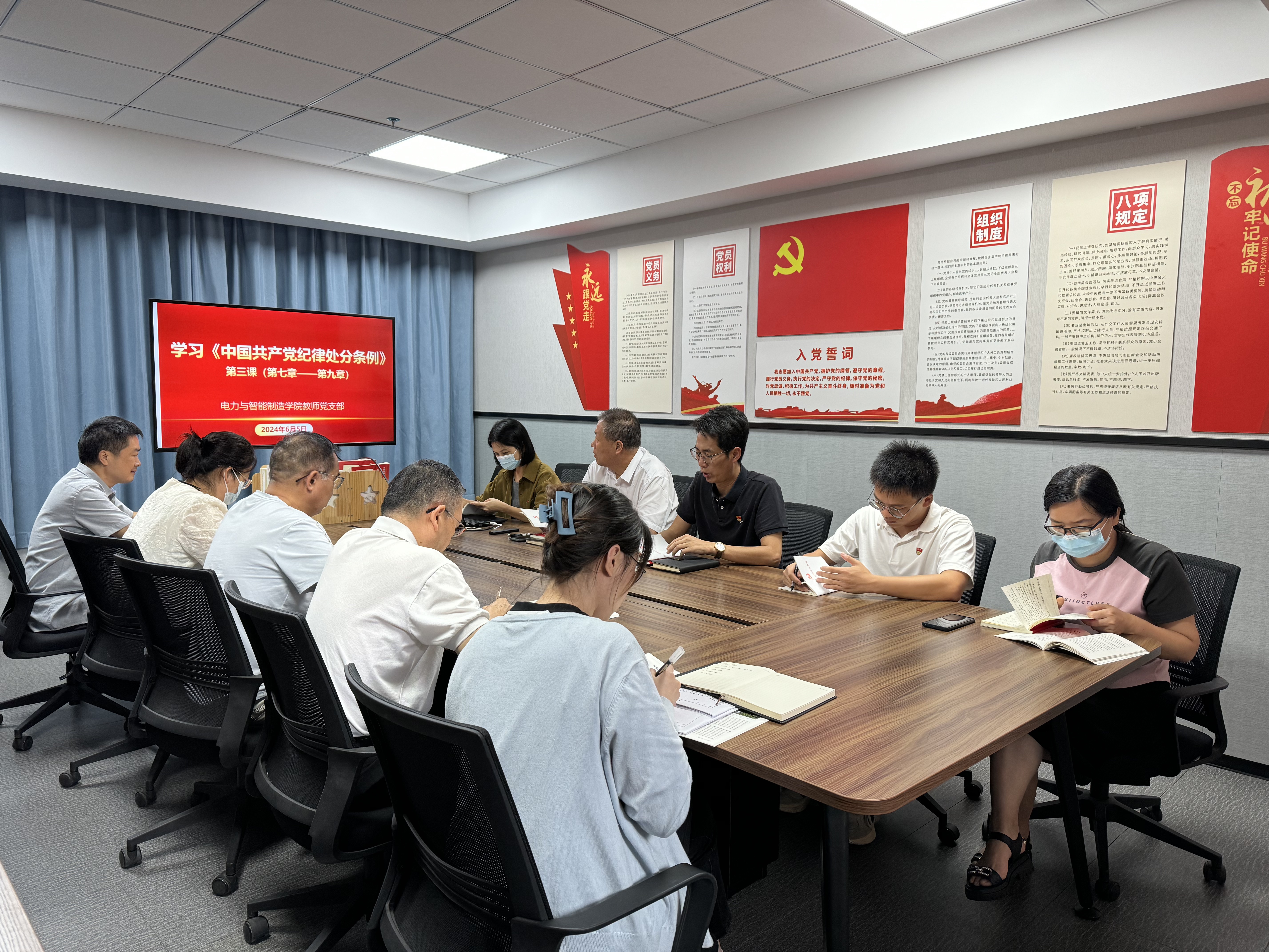本節(jié)課,由電力與智能制造學(xué)院教師黨支部書記孫令真同志領(lǐng)學(xué)《中國共產(chǎn)黨紀(jì)律處分條例》中第七章至第九章的內(nèi)容。