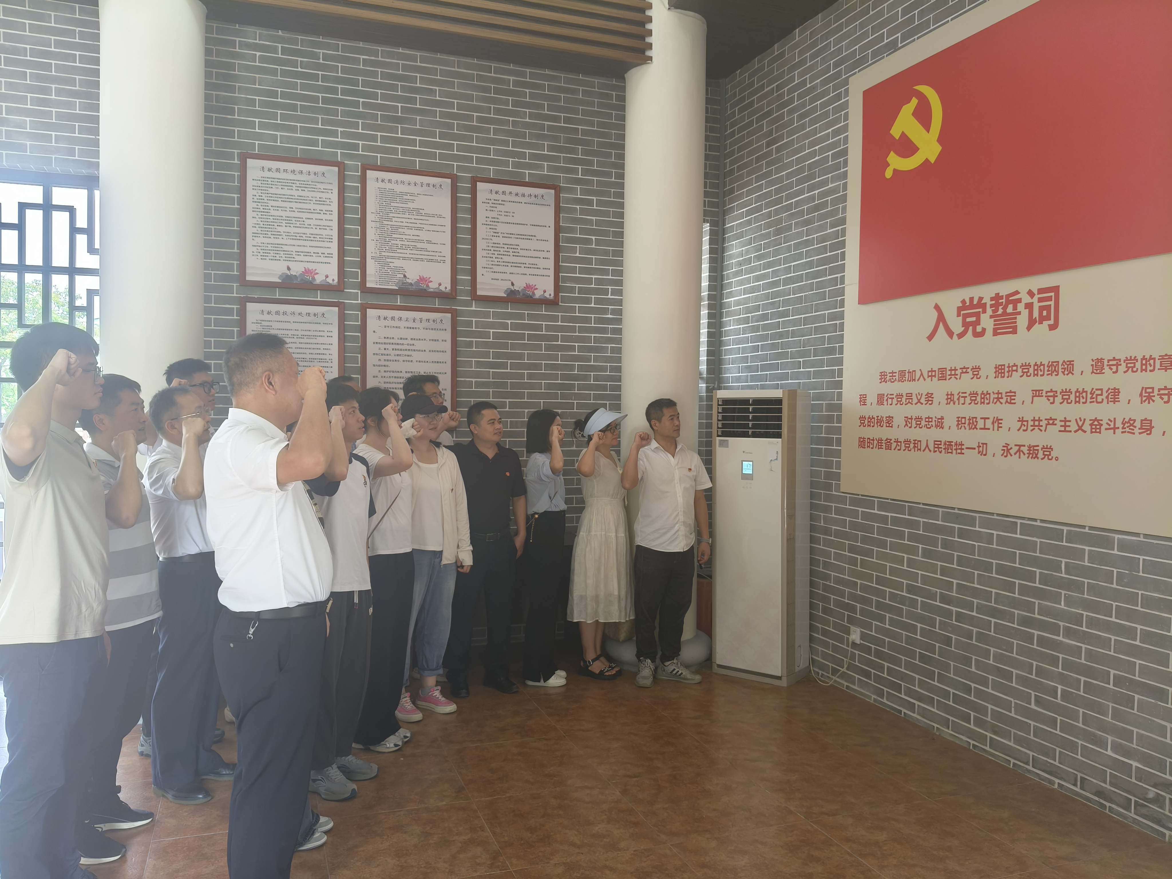 “清獻(xiàn)園”的大廳里,全體黨員面向黨旗重溫了入黨誓詞,由學(xué)院黨總支書記褚玉峰領(lǐng)誓。