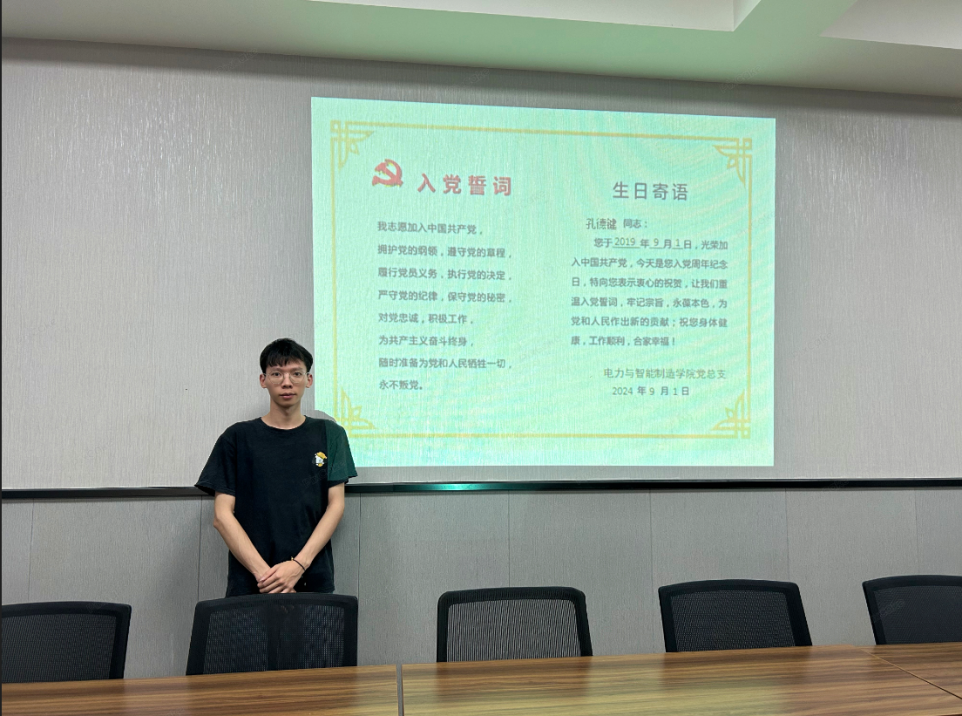 作為電力與智能制造學(xué)院云浮校區(qū)的一名教師黨員孔德鍵,在收到學(xué)院黨組織發(fā)來的“政治生日”賀卡后心情特別興奮,也感謝組織的關(guān)懷。9月1日,是我的政治生日,我認(rèn)為政治生日是表達(dá)對黨的忠誠和堅(jiān)定的重要時(shí)刻。火紅的黨旗永遠(yuǎn)飄揚(yáng)在我心中,莊嚴(yán)的入黨誓詞永遠(yuǎn)融入我靈魂深處,它已轉(zhuǎn)化成我行動的力量,使我以堅(jiān)強(qiáng)的黨員意志投入到黨的工作中,甘于拼搏奉獻(xiàn)。