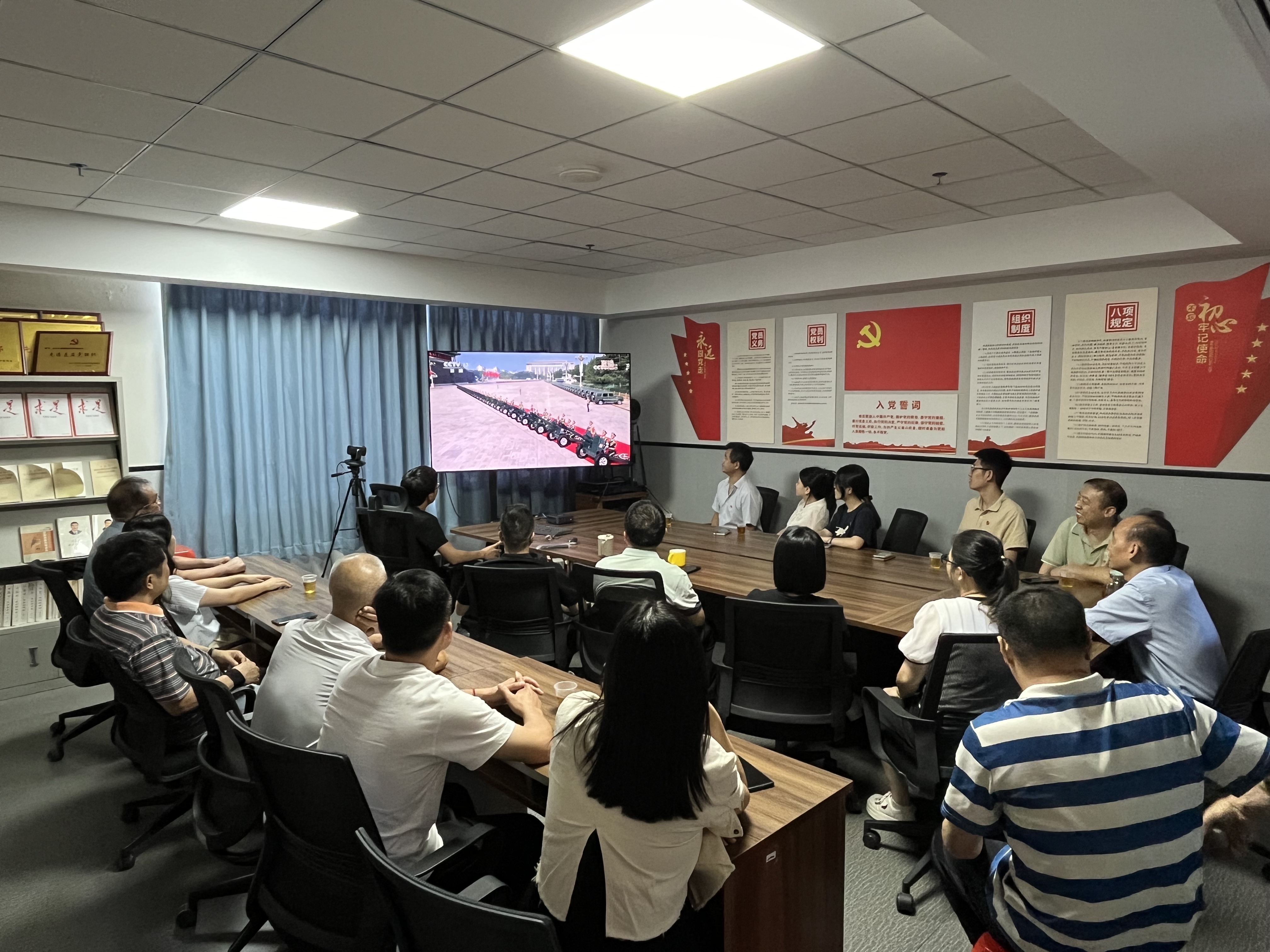 上午9時(shí),大會(huì)正式開始。與會(huì)同志認(rèn)真聆聽習(xí)近平總書記重要講話,隨后,天安門廣場上80響禮炮響徹云霄,伴隨著雄壯的《義勇軍進(jìn)行曲》奏響,大家全體起立,齊唱中華人民共和國國歌,共同注視著鮮艷的五星紅旗冉冉升起。當(dāng)閱兵隊(duì)伍的空中護(hù)旗梯隊(duì)、徒步方隊(duì)、戰(zhàn)旗方隊(duì)、裝備方隊(duì)、空中梯隊(duì)依次通過天安門廣場,集中觀看直播現(xiàn)場掌聲雷動(dòng),整齊的陣容、豪邁的氣勢、先進(jìn)的武器裝備讓大家倍感自豪、贊嘆不已,由衷為偉大祖國感到驕傲。