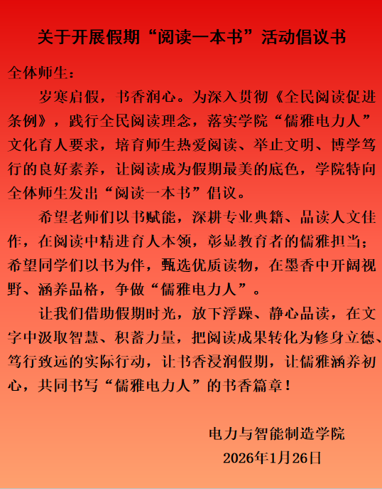 1月26日,臨近放假,電力與智能制造學(xué)院在西1-514會議室舉行“假期閱讀一本書”活動啟動儀式,學(xué)院廣州校區(qū)的全體教師參加了會議,云浮校區(qū)的教師通過連線方式也參加了會議。
