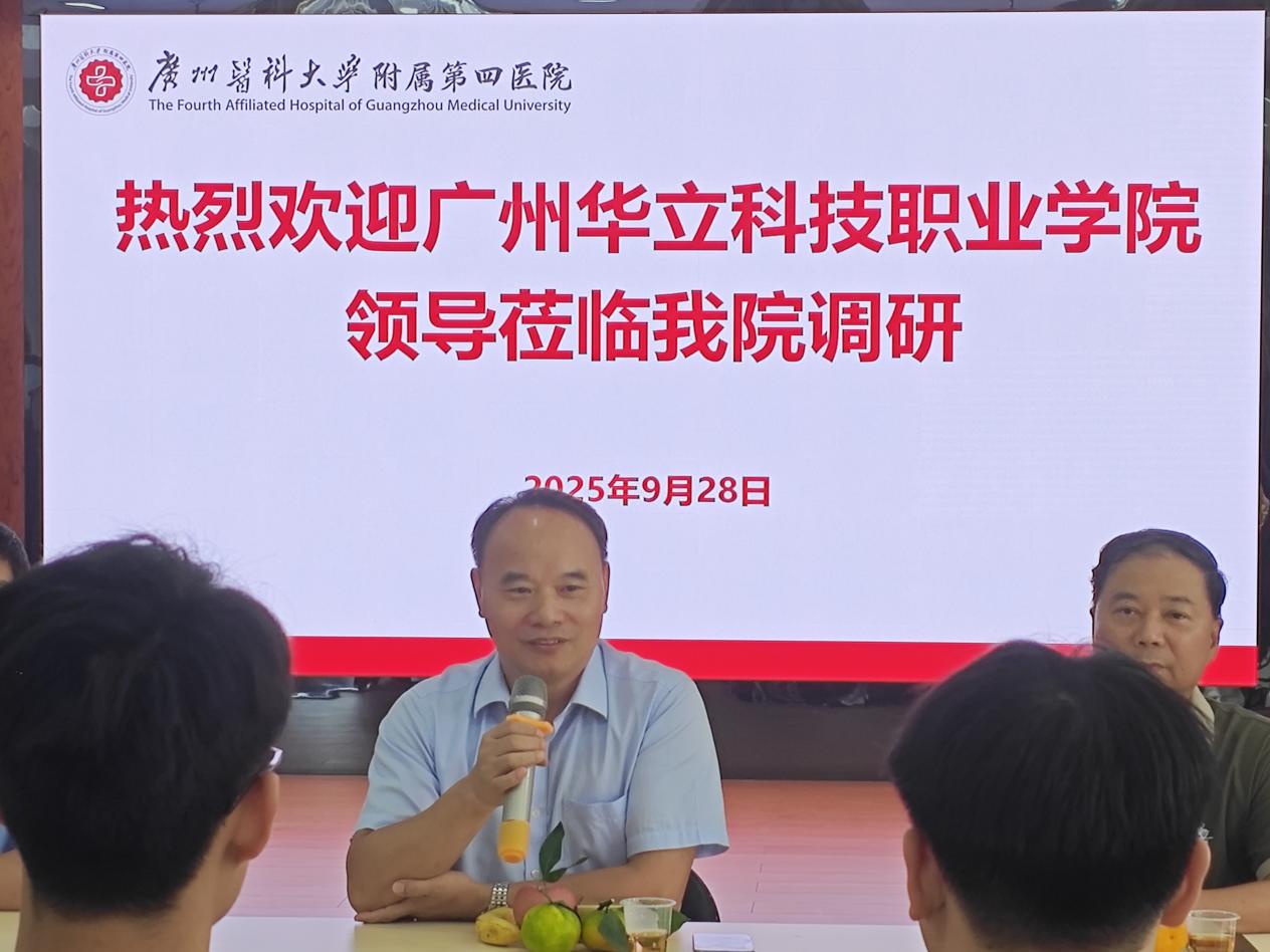 在國慶、中秋雙節(jié)來臨之際,2025年9月28日下午,我校廖俊杰校長(zhǎng)、教務(wù)處孫麗英處長(zhǎng)、實(shí)踐教學(xué)科韋建林科長(zhǎng)、健康學(xué)院雷毅雄院長(zhǎng)、李國良副院長(zhǎng)、行政主任梁瑞云、實(shí)習(xí)指導(dǎo)老師鄧香華、楊鵬一行赴廣州醫(yī)科大學(xué)附屬第四醫(yī)院訪企拓崗,給健康學(xué)院2023級(jí)在該醫(yī)院進(jìn)行臨床實(shí)習(xí)的華立學(xué)子們送去節(jié)日的關(guān)懷。廣州醫(yī)科大學(xué)附屬第四醫(yī)院郭建軍副院長(zhǎng),科教科劉志毅副科長(zhǎng)、陳彩青科護(hù)長(zhǎng),張琴口腔科主任等院領(lǐng)導(dǎo)熱情參與了中秋慰問活動(dòng)。