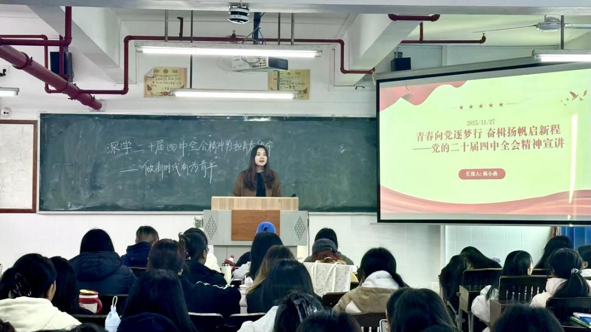 為深入學(xué)習(xí)宣傳黨的全會(huì)精神,引導(dǎo)青年學(xué)子堅(jiān)定理想信念、勇?lián)鷷r(shí)代使命,2025年11月28日上午,廣州華立科技職業(yè)學(xué)院健康學(xué)院在西三603教室順利舉行“青春向黨逐夢(mèng)行 奮楫揚(yáng)帆啟新程——黨的二十屆四中全會(huì)精神專(zhuān)題宣講” 活動(dòng)。本次宣講由健康學(xué)院輔導(dǎo)員陳小燕老師主講。