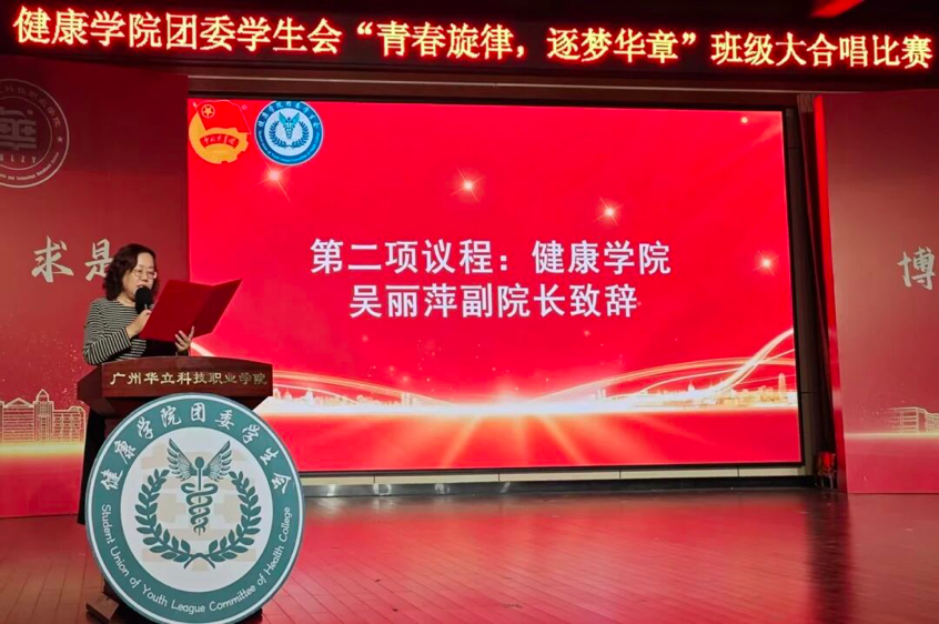 學(xué)院領(lǐng)導(dǎo)高度重視此次活動,健康學(xué)院副院長吳麗萍老師,學(xué)管辦公室副主任唐青老師,健康學(xué)院團(tuán)委書記鄭幫輝老師及全體輔導(dǎo)員老師出席并擔(dān)任評委。吳麗萍副院長在致辭中強(qiáng)調(diào):大合唱不僅是一項文藝活動,更是一堂關(guān)于傾聽、信任與協(xié)作的"團(tuán)隊必修課",希望同學(xué)們能在過程中完成從"我"到"我們"的集體成長。