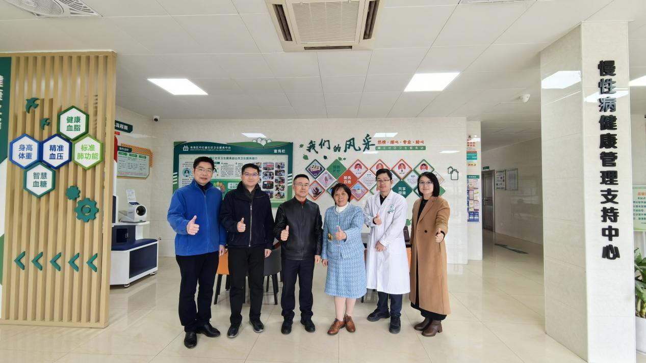圖為健康學院羅琴芳博士與丹灶社區(qū)衛(wèi)生服務(wù)中心何立華主任等、及橫江衛(wèi)生站慢性病健康管理支持中心全科醫(yī)生合影