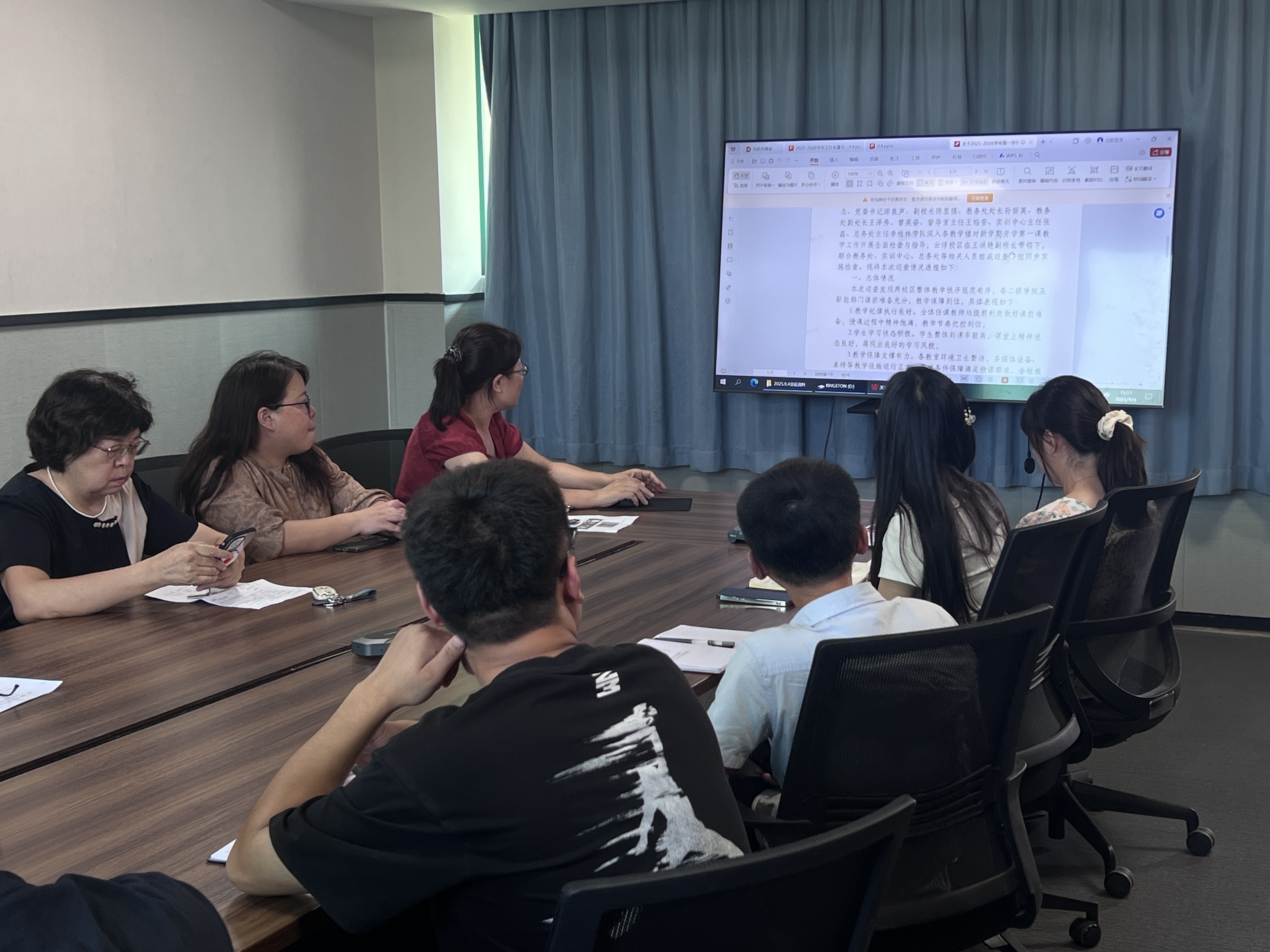 王主任通報(bào)了近期教學(xué)工作整體情況。重點(diǎn)圍繞教學(xué)紀(jì)律、教態(tài)規(guī)范、教學(xué)安排、教風(fēng)學(xué)風(fēng)等方面,并指出當(dāng)前存在的部分教師在教學(xué)場(chǎng)所周邊有不規(guī)范行為、部分教師授課時(shí)與學(xué)生互動(dòng)不夠充分等問(wèn)題,同時(shí)提出初步改進(jìn)建議。