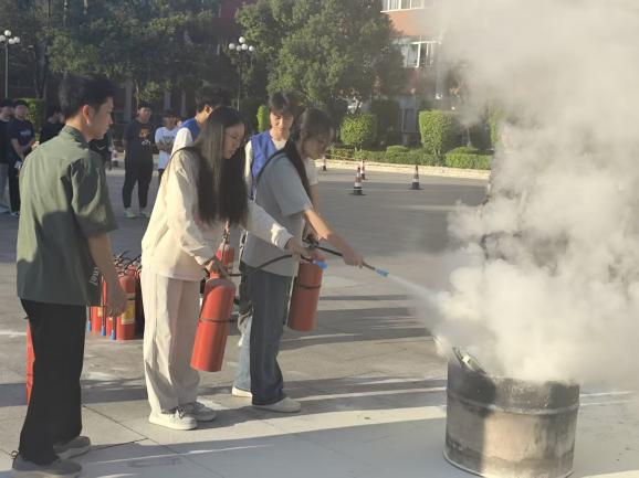 在疏散演練后,師生們進(jìn)行了滅火器材的實(shí)際操作訓(xùn)練,進(jìn)行模擬滅火操作,參訓(xùn)師生輪流上場(chǎng)操作,親身體驗(yàn)滅火過程,將理論知識(shí)轉(zhuǎn)化為實(shí)戰(zhàn)技能?!耙惶?、二拔、三握、四壓”的使用要領(lǐng)被反復(fù)強(qiáng)調(diào),確保每位參與者都能熟練掌握。