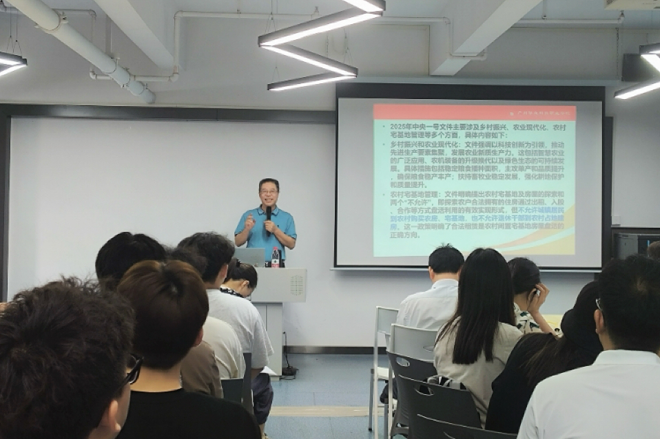 陳校為師生解讀2025年中央1號(hào)文件精神與鄉(xiāng)村全面振興規(guī)劃,闡述“三農(nóng)”問題在中國(guó)社會(huì)主義現(xiàn)代化建設(shè)時(shí)期“重中之重”的地位,強(qiáng)調(diào)要以科技創(chuàng)新為引領(lǐng),發(fā)展農(nóng)業(yè)新質(zhì)生產(chǎn)力。