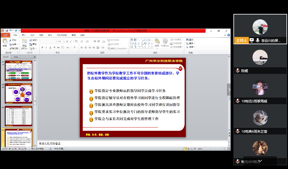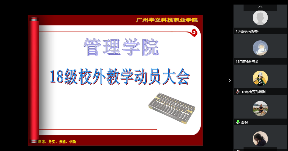 為進一步做好2018級學生校外實習工作以及推進我院校外教學工作順利開展。管理學院相關領導老師于2020年4月28日晚上7點30分在微信視頻會議召開2018級校外教學工作動員籌備會議。