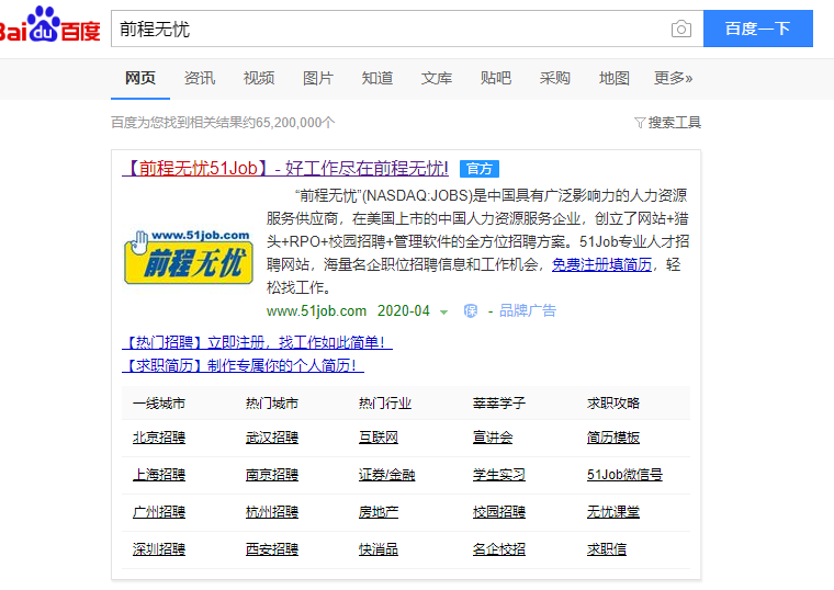 首先,下載或在瀏覽器中搜索前程無憂的APP或網(wǎng)頁。