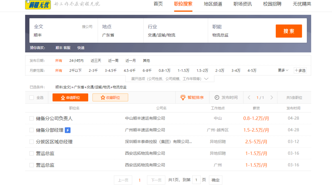 填寫完自己條件點搜索后,會顯示出數(shù)個符合自己設定條件的職位,讓你進行選擇。